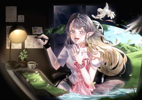 คำอธิบาย : In the silent moment between chaos and creation, she stands as the weaver of worlds, her hands guiding unseen forces that bend nature, spirit, and imagination into existence. From blooming petals to wandering beasts and swirling light, every fragment of life answers her call. With each motion, a new reality unfolds — not born from power alone, but from vision, longing, and the boundless force of creation itself